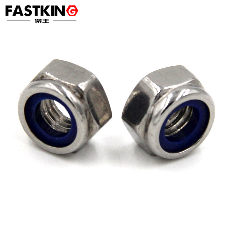 2、尼龍鎖緊螺母:在六角面里鑲嵌尼龍膠圈,防止螺紋松動的結(jié)構(gòu),強(qiáng)動力機(jī)械上使用。