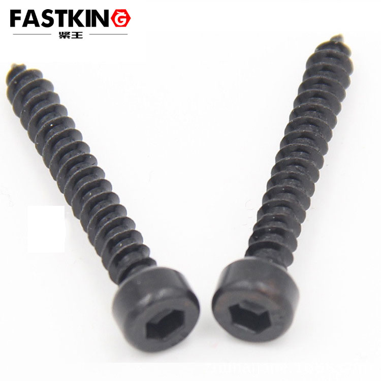 使用時,無需預先在被連接件(如木材、塑料、薄金屬板等)上鉆孔攻絲,憑借尖銳尾部的自攻特性,可直接通過旋轉切入材料并形成螺紋,實現組件的快速定位與牢固鎖緊。同時,頭部的內六角槽設計便于使用內六角扳手操作,能精準施加擰緊力矩,相較于普通一字槽或十字槽螺絲,更不易出現 “滑批”(扳手打滑導致槽口損壞)問題,尤其適用于安裝空間狹窄、對連接強度要求較高的場景。