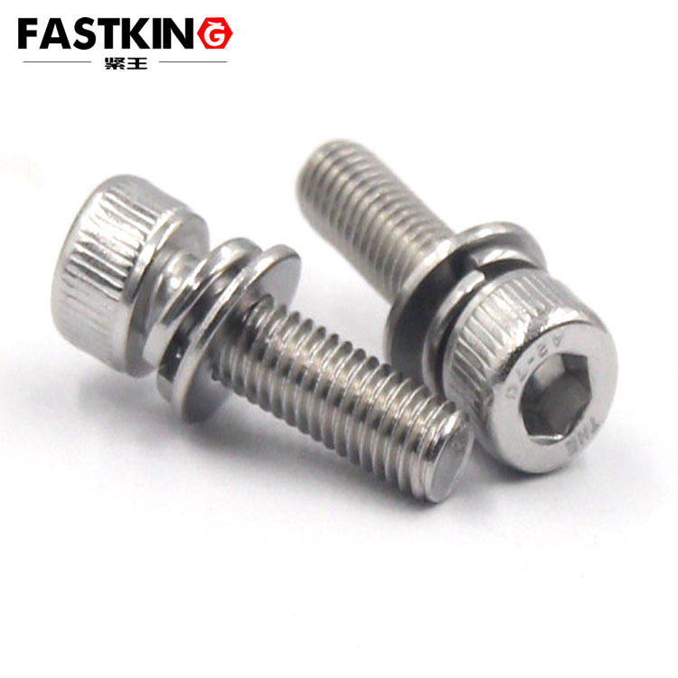 相較于單獨采購螺釘、彈墊、平墊再逐一裝配的傳統方式,圓柱頭內六角三組合螺絲的優勢顯而易見。首先是提升裝配效率,傳統方式需要工人分別取放三種零件,還要調整位置確保對齊,尤其在批量生產中,會浪費大量時間;而三組合螺絲出廠時已將三者預組裝為一體,工人只需一次取件、一次擰緊即可完成裝配,據統計,可將裝配效率提升 30% 以上,大幅降低企業的人工成本。其次是保障裝配質量,單獨裝配時,若工人操作不當(如漏裝彈墊、平墊位置偏移),會導致緊固效果大打折扣;三組合螺絲的標準化組裝的,能確保每個組件都符合規格,避免因人為失誤引發的質量問題。此外,它還能減少庫存管理壓力 —— 企業無需分別儲備三種零件,只需按需求采購組合螺絲,降低了庫存積壓風險與倉儲成本。