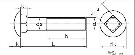 上面的設計圖是小頭馬車螺栓,它是馬車螺栓的兩大類之一,也叫小半圓頭馬車螺栓,對應的標準是GB/T12-85,還有一類就是大頭馬車螺栓,也叫大半圓頭馬車螺栓,對應的標準是GB/T14和DIN603。馬車螺栓的這兩大類就是按照其頭部大小來分的。