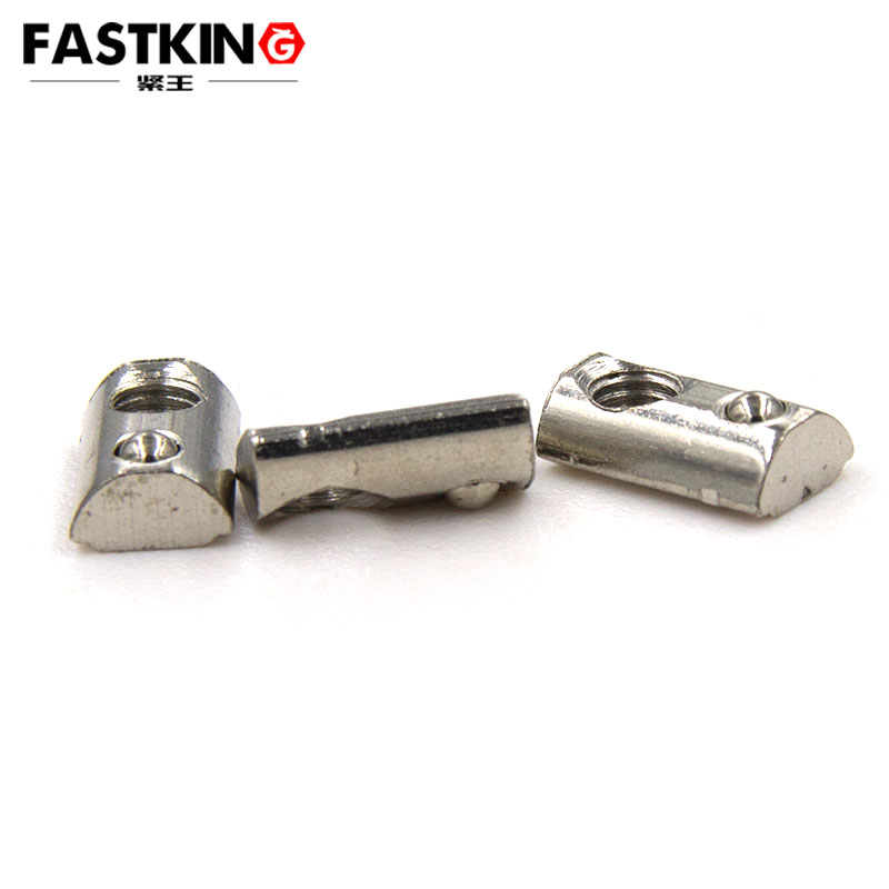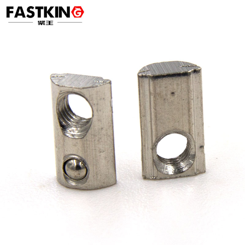 鍍鎳歐標 20 型彈珠螺母的結構設計獨具匠心。其主體部分采用優質碳鋼材質打造,這為螺母提供了堅實的基礎強度,使其能夠承受較大的外力作用而不發生變形或損壞。在螺母的背部,安裝有彈簧鋼球,這是彈珠螺母區別于其他普通螺母的關鍵設計點。當螺母被安裝到歐標 20 型鋁型材的槽坑中時,彈簧鋼球會在彈力作用下緊緊頂住型材槽的底部,從而將螺母穩固地固定在槽內的任意裝配點上。這種設計使得彈珠螺母在安裝過程中無需借助特殊工具,也不需要復雜的定位步驟,大大提高了安裝效率。