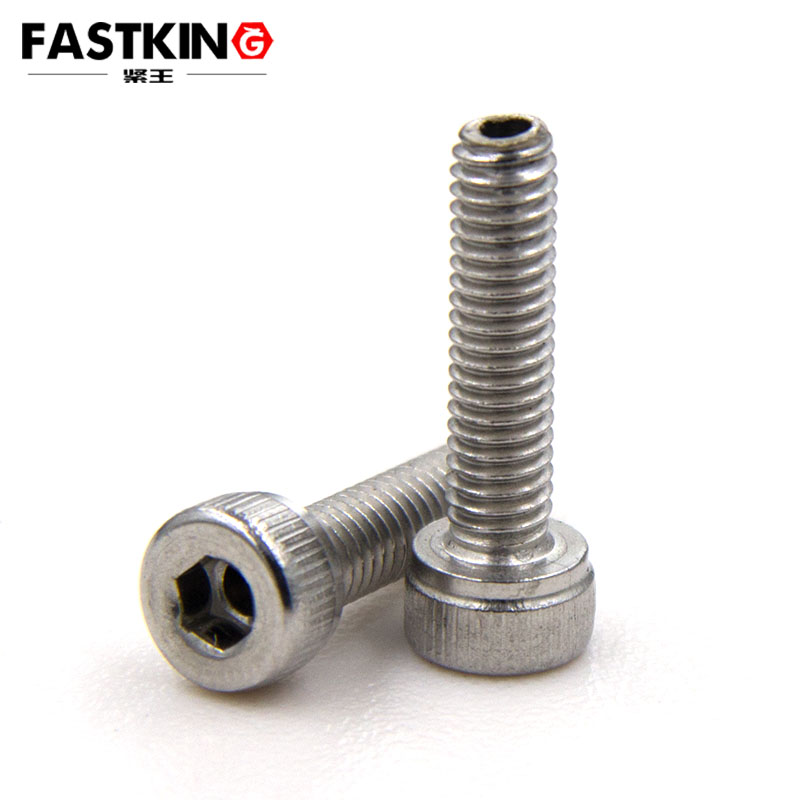 杯頭內六角通孔螺絲的牢固性,首先源于其結構設計的針對性優化。從外觀來看,“杯頭”(又稱圓柱頭)相較于盤頭、沉頭螺絲,擁有更大的頭部承壓面積與高度,擰緊時能將扭矩更均勻地傳遞到被連接件表面,避免局部壓力過大導致的基材變形,同時頭部與螺絲桿的過渡處采用圓弧倒角設計,可減少應力集中,防止長期受力后出現頭部斷裂;“內六角” 驅動方式則解決了傳統一字槽、十字槽螺絲易滑絲的痛點 —— 內六角槽與扳手的貼合度更高,能承受更大的擰緊扭矩,尤其在高強度緊固場景(如重型機械連接)中,可有效避免因扭矩不足導致的連接松動;而 “通孔” 結構(螺絲桿貫穿兩端,無封閉端)則賦予其靈活的連接適配性,既可配合螺母實現 “雙向緊固”(適用于厚板材連接),也能在需要穿銷、接線的場景中直接使用,避免額外打孔破壞連接完整性,進一步提升連接可靠性。