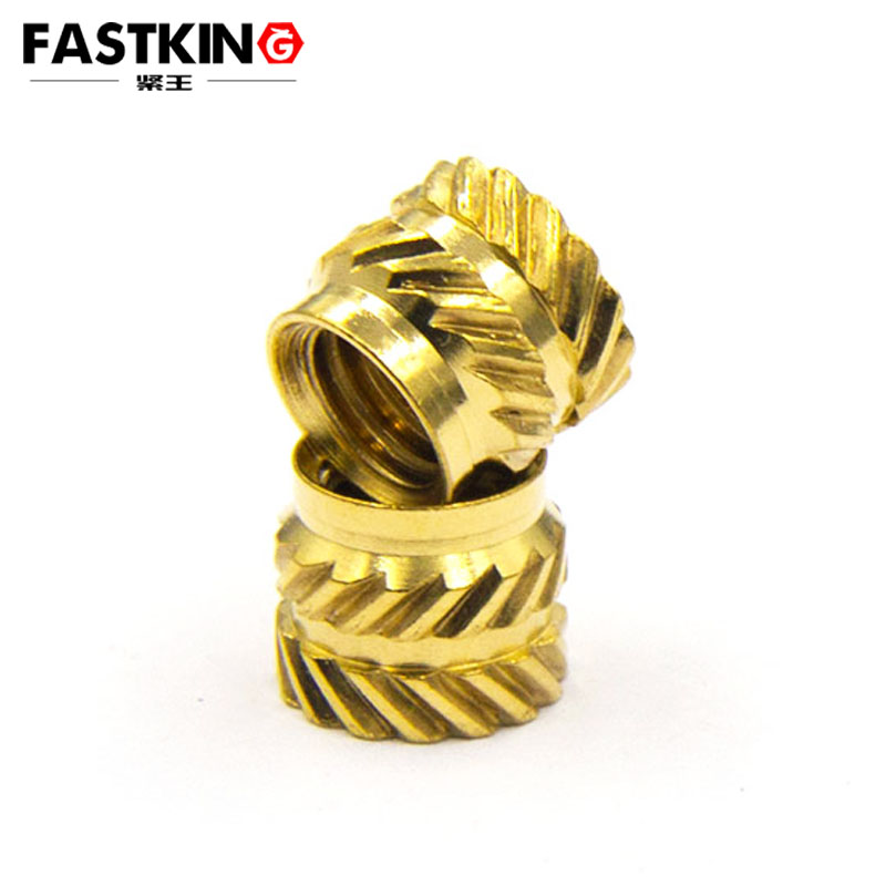 Injection-molded copper nuts: During the injection molding process of the plastic part, the nut is pre-placed in the mold cavity. The molten plastic wraps around the nut and fills the patterns on its surface (such as straight patterns, mesh patterns, or helical patterns). After cooling, the nut and the plastic part become an integrated unit, eliminating the need for subsequent heating and pressing. This type is suitable for mass production scenarios.